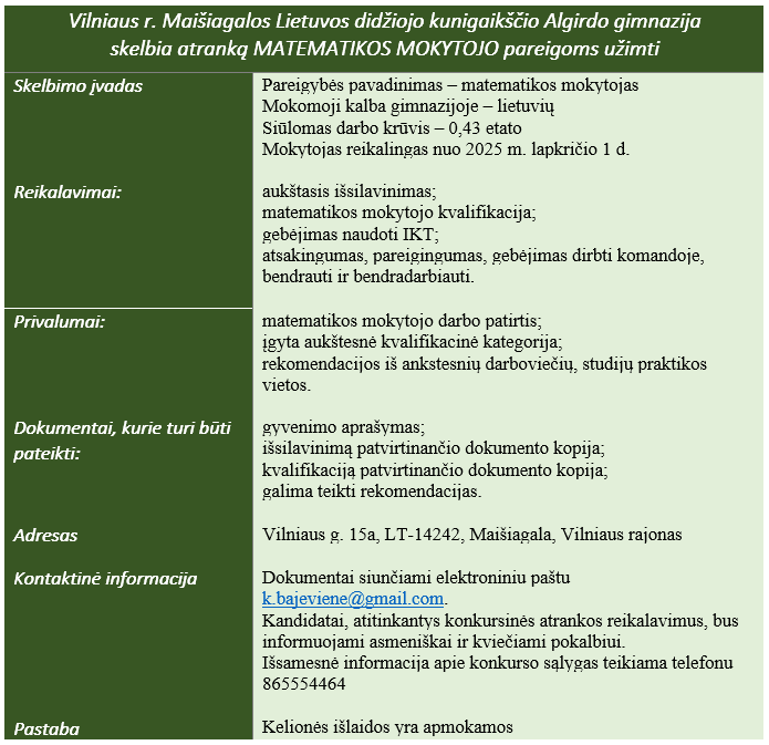 © 2025 Maišiagalos Lietuvos didžiojo kunigaikščio Algirdo gimnazija. Built using WordPress and OnePage Express Theme.