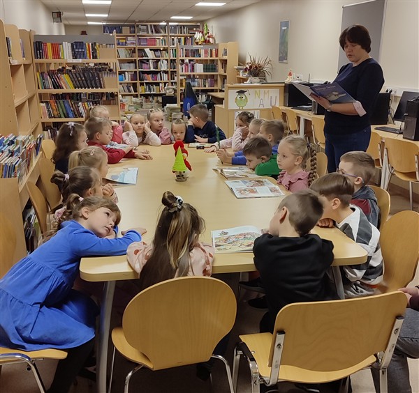 Mažųjų skaitytojų apsilankymas bibliotekoje